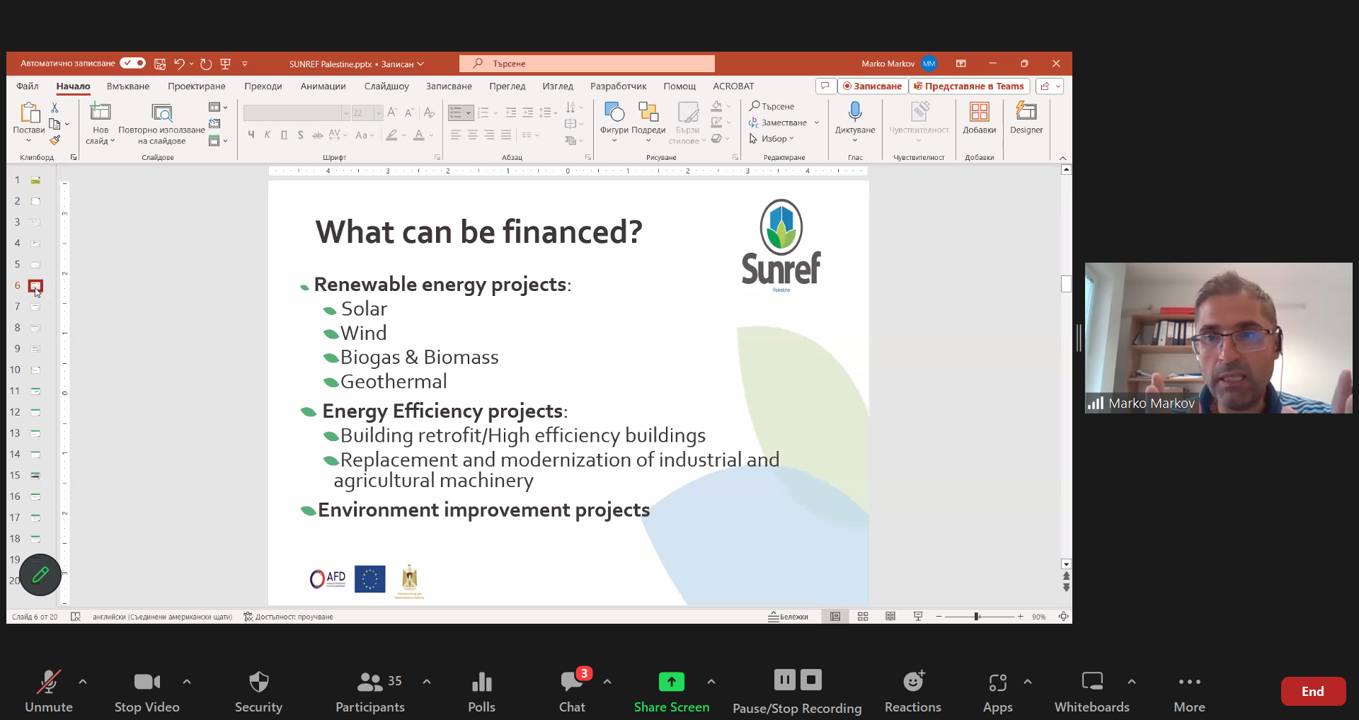 محاضرة بعنوان (SUNREF Palestine – a pathway to decarbonizing the Palestinian economy)