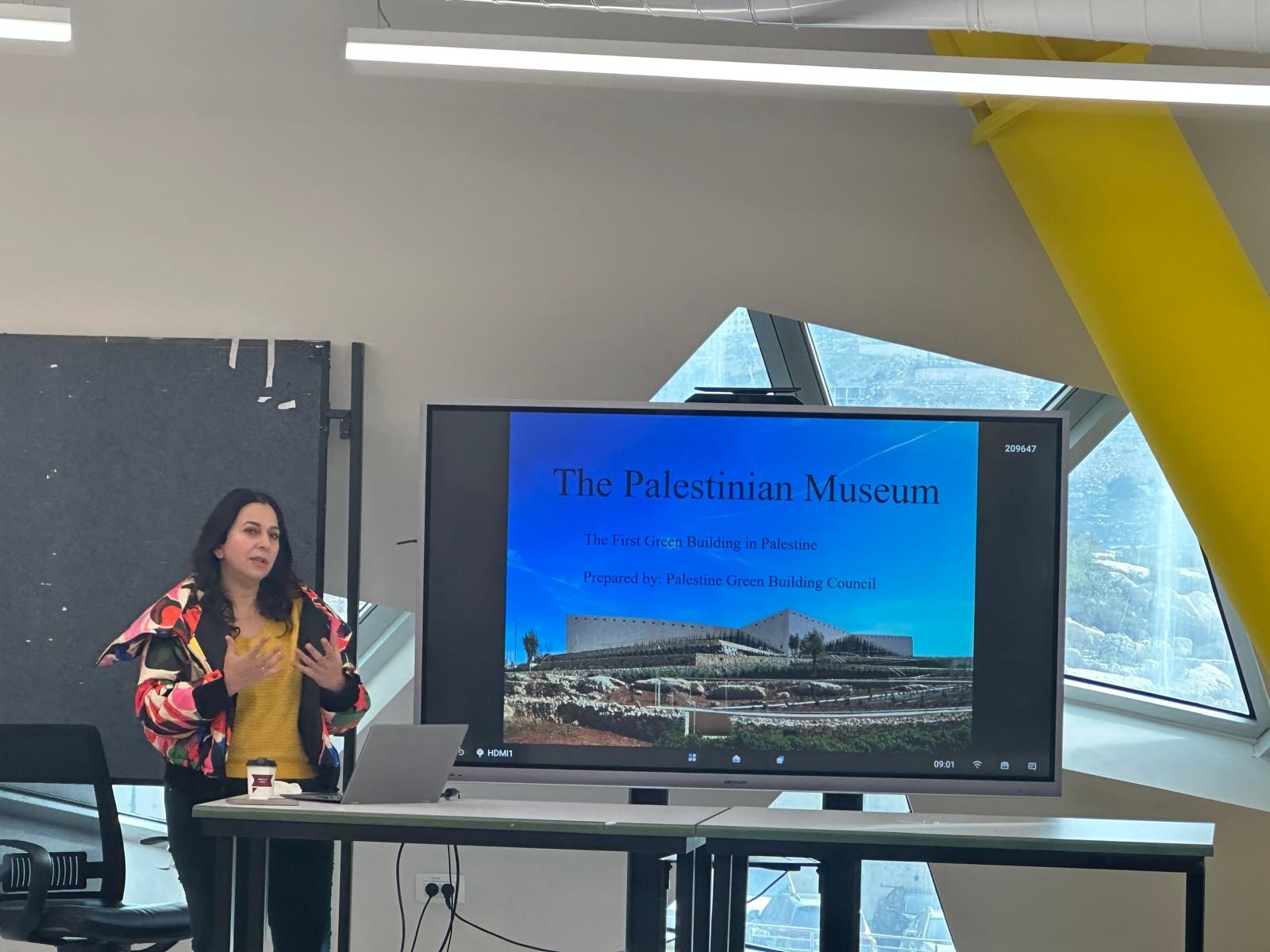 وشملت المحاضرتين الحديث عن مشروع التعديلات التحديثية التي نفذها المجلس ضمن مشاريعه واستعراض المعايير التي اتُبعت في المتحف الفلسطيني كحالة عملية كونه حصل على شهادة (LEED) الذهبية، حيث استعرض المجلس دوره في الإشراف على تنفيذه وتطبيق أفضل الممارسات البيئية فيه، مما وفر للطلاب فرصة التعرف على تجربة عملية للمباني الخضراء في فلسطين.